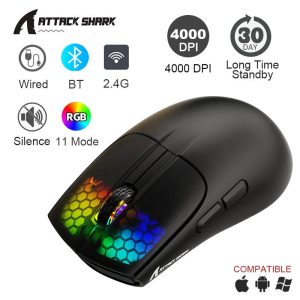 MOUSE ATTACK SHARK X5 RGB 3 MODES ( WIRED + WIRELESS + BLUETOOTH )