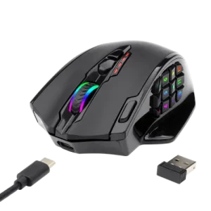 لاسلكي/سلكي، طريقان للفوز – وضعان مزدوجان لوضع 2.4 جيجا هرتز اللاسلكي ووضع USB-C السلكي مع 12 زرًا جانبيًا لخاصية ماوس الألعاب MMO. الوضع اللاسلكي/السلكي