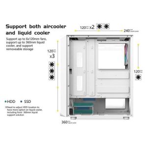 - تبريد قوي: يأتي مزودًا بأربعة مراوح ARGB مسبقة التركيب ويدعم تركيب مبردات سوائل في الأمام.